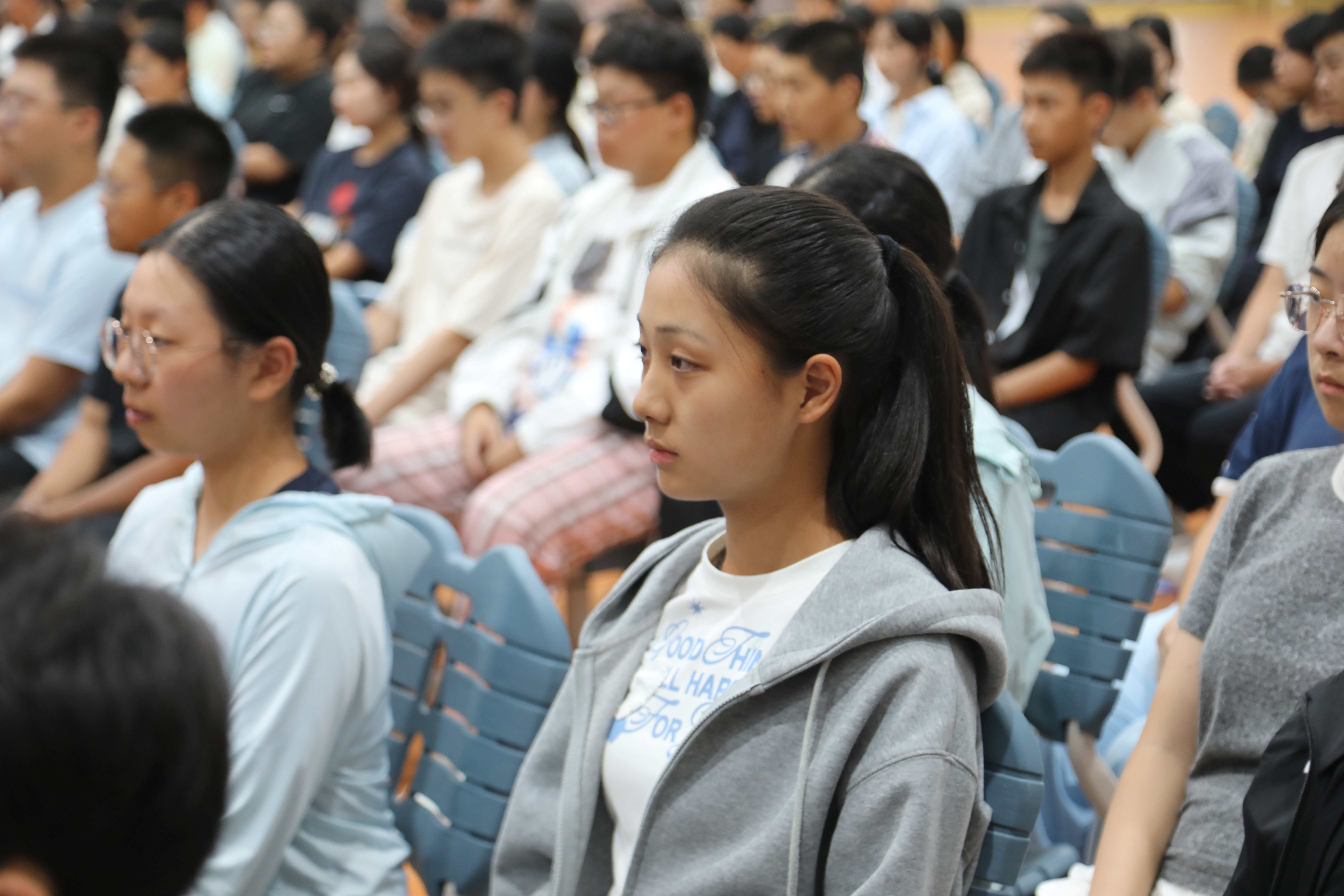 高一(6)班李明泽同学作为学生代表首先发言。她慷慨激昂地表达了作为学校首届学子的荣幸与责任:“我们要以主人翁的姿态,珍惜这来之不易的学习条件,共同维护这个我们即将生活三年的美好校园。”
