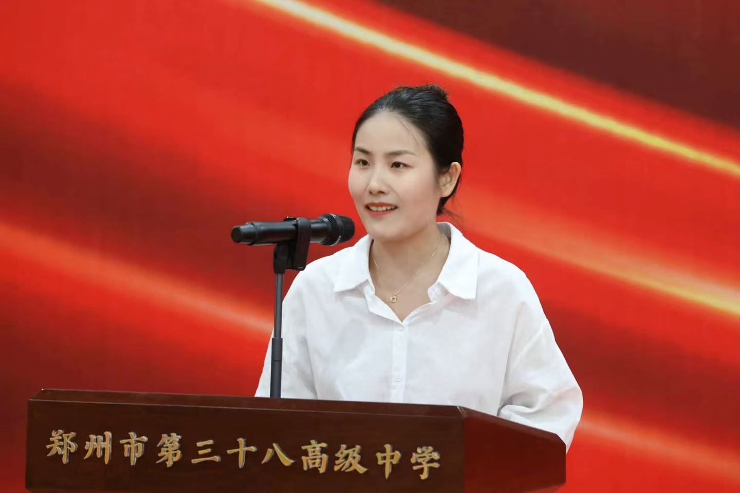 教师代表李妍以“乘青春之帆 赴理想之约”为主题,用诗意的语言欢迎同学们加入三十八高这个温暖的大家庭。“今天的校园,每一面墙都还带着‘初遇’的温柔,每一间教室都在静静等候着故事的开篇。”