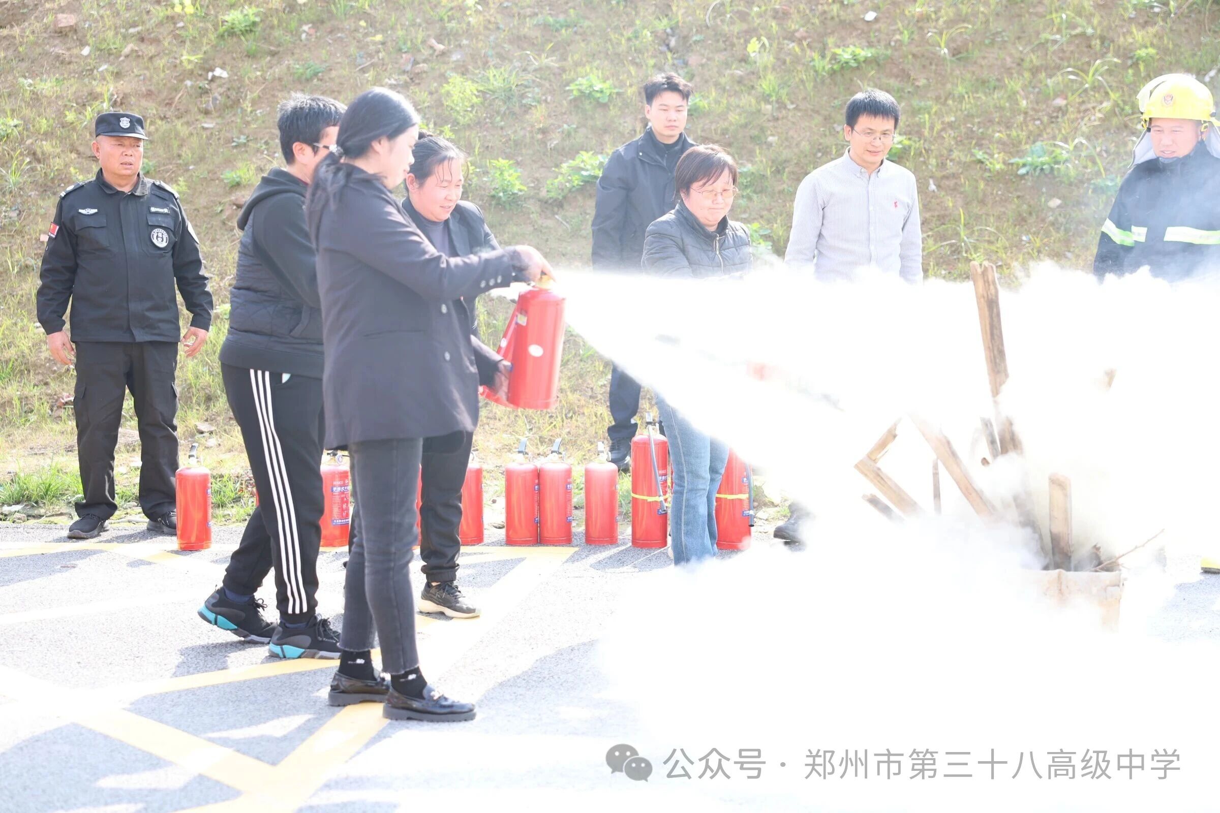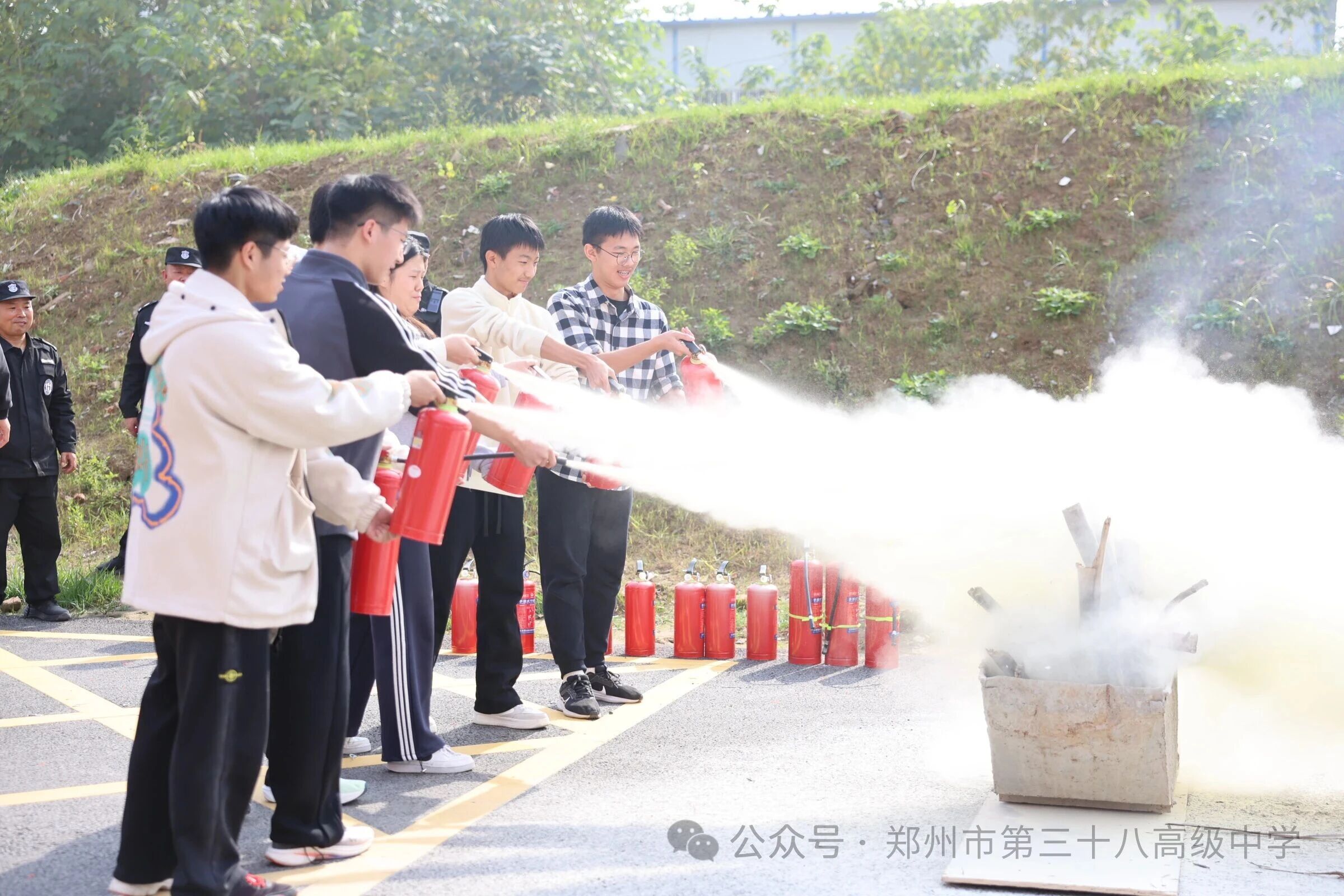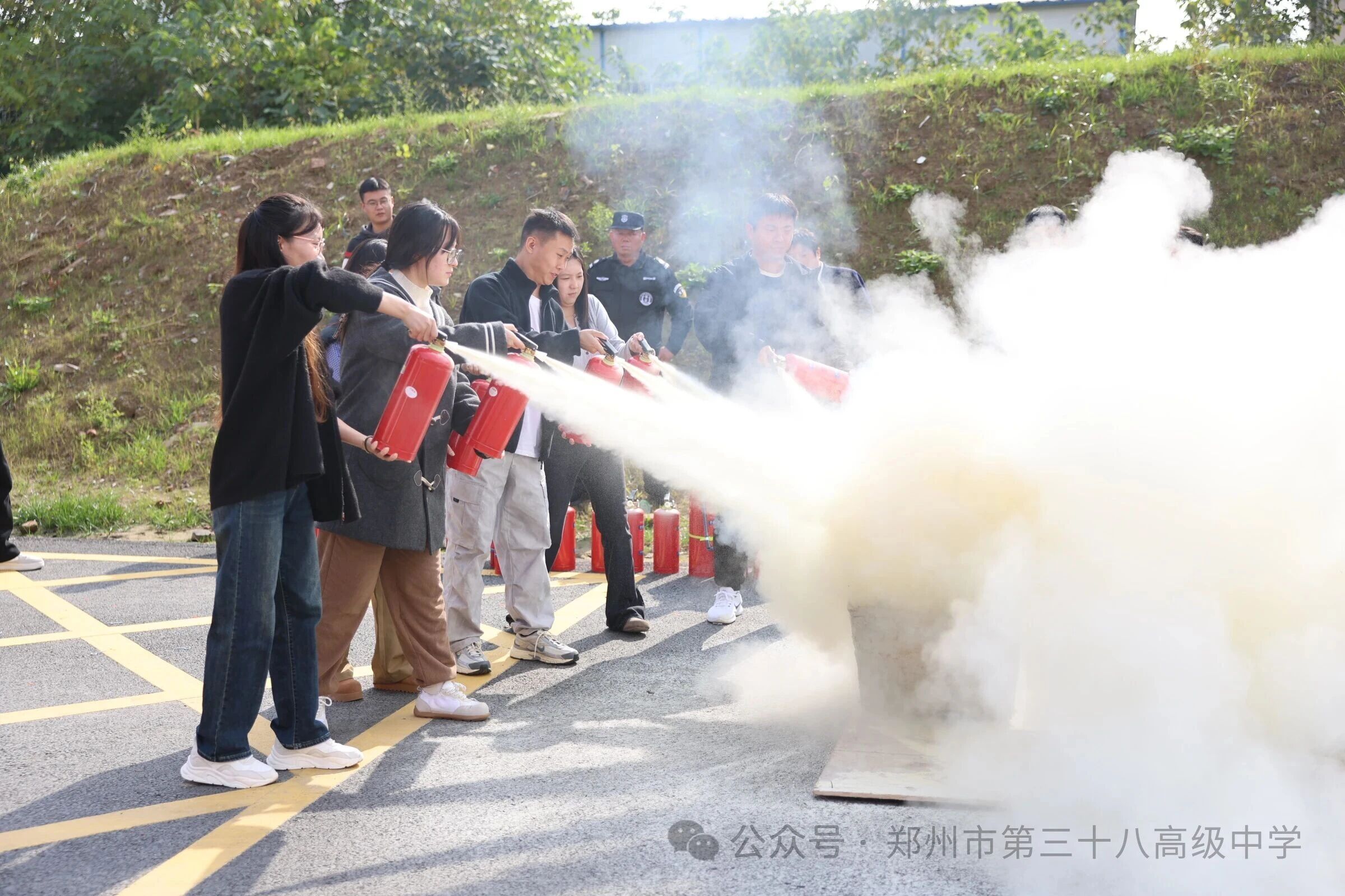 以练筑防,守护平安|郑州市第三十八高级中学开展2025年消防宣传月•灭火器实操演练