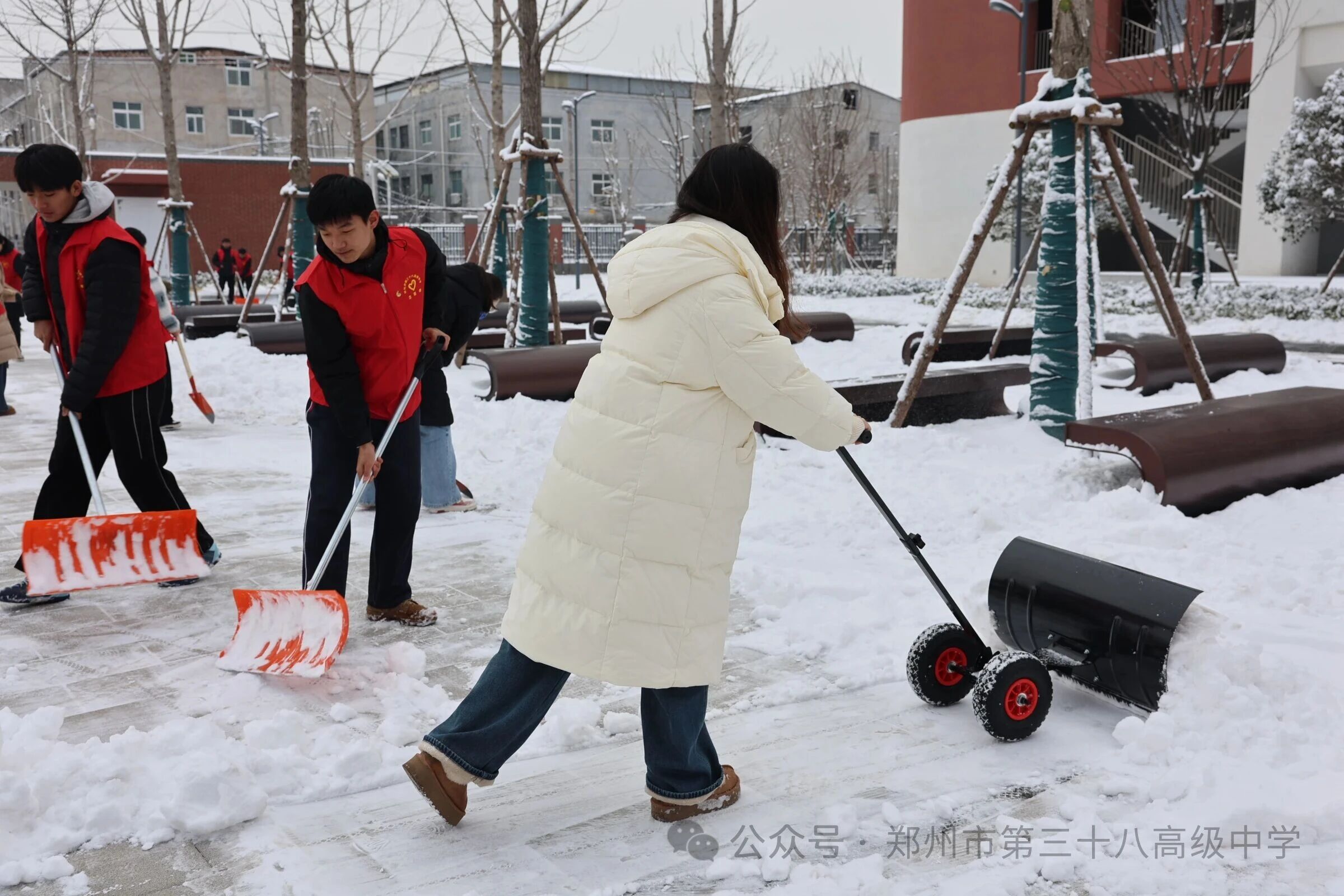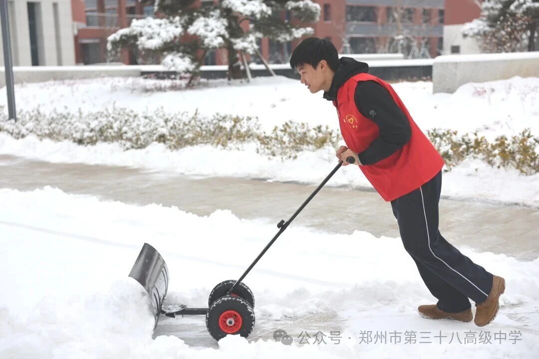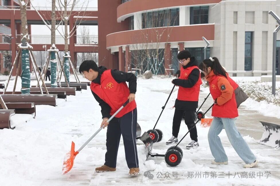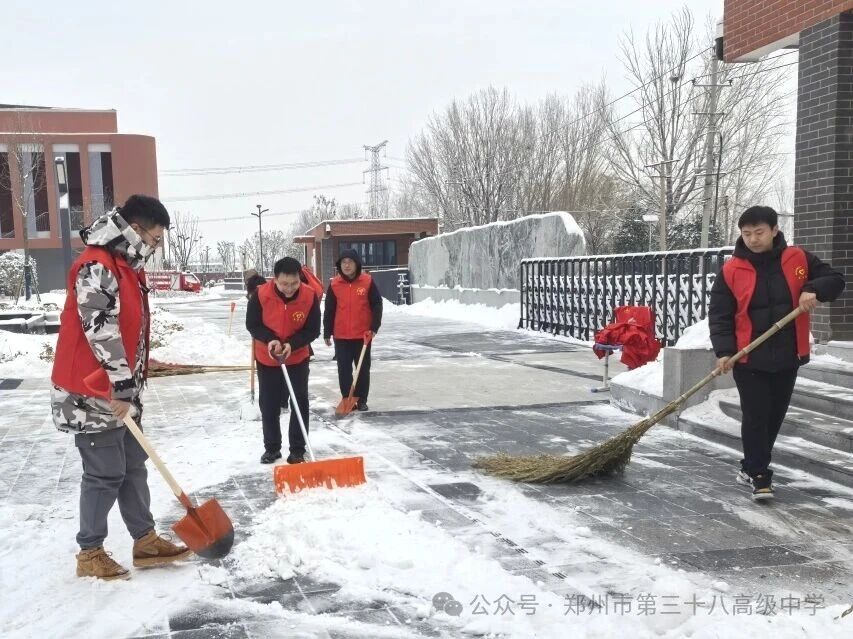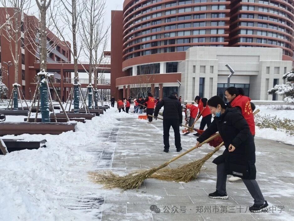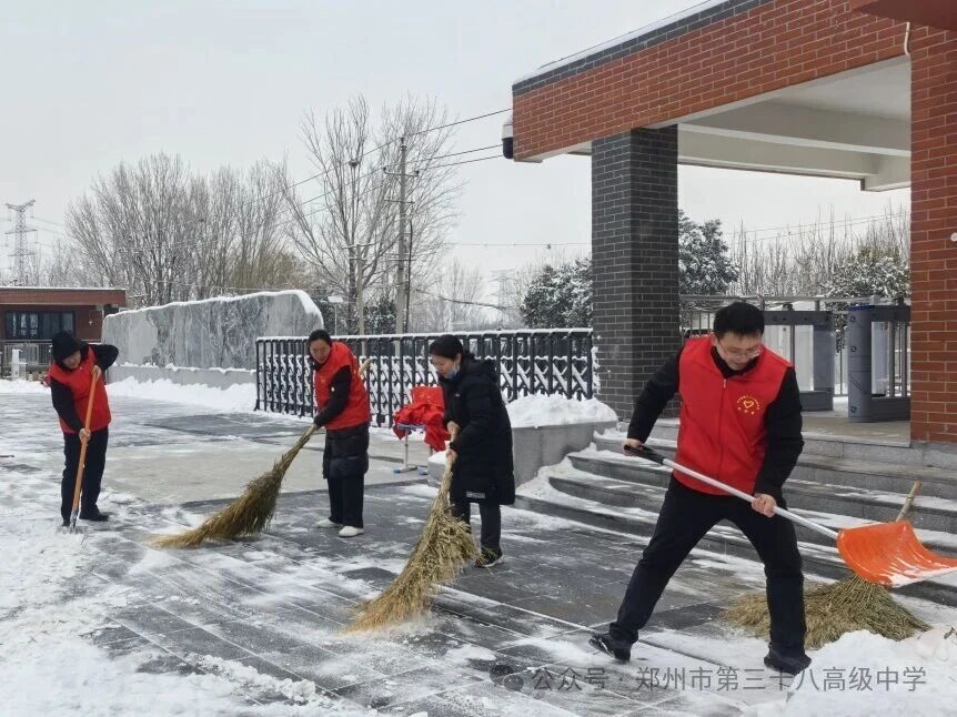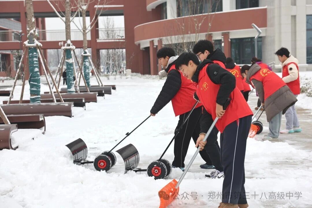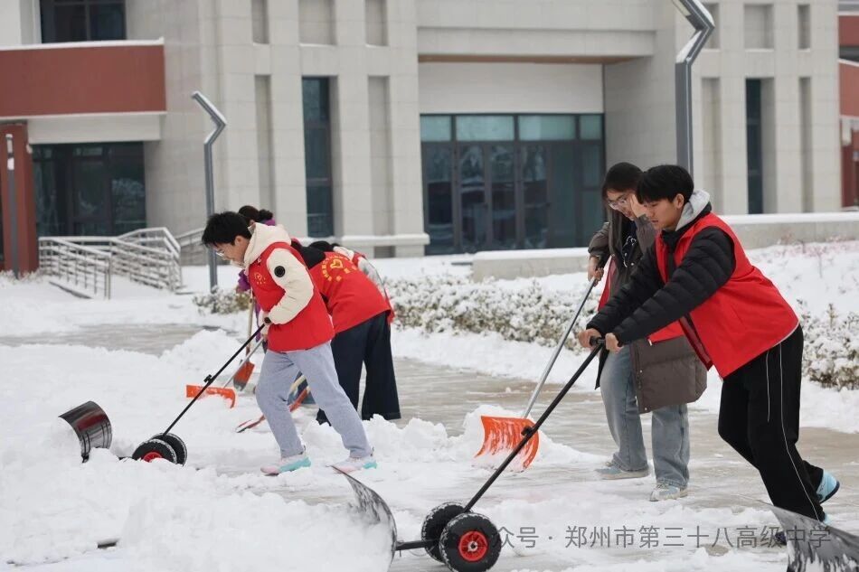 师生齐心清积雪 温情满园护平安——郑州市第三十八高级中学 师生扫雪除冰活动温情开展