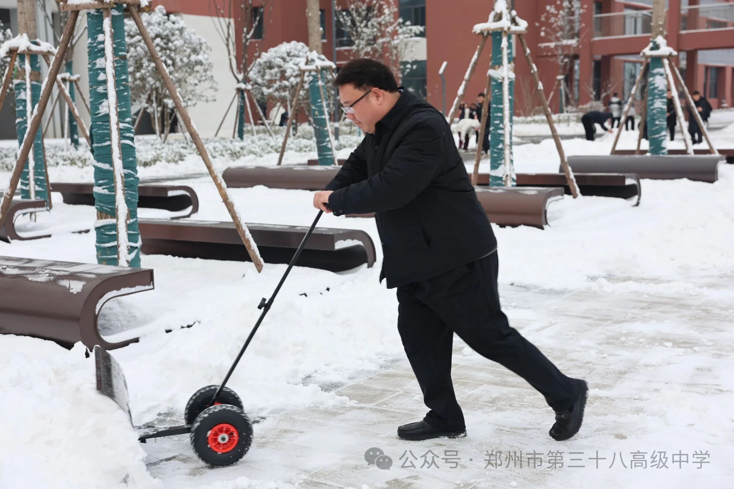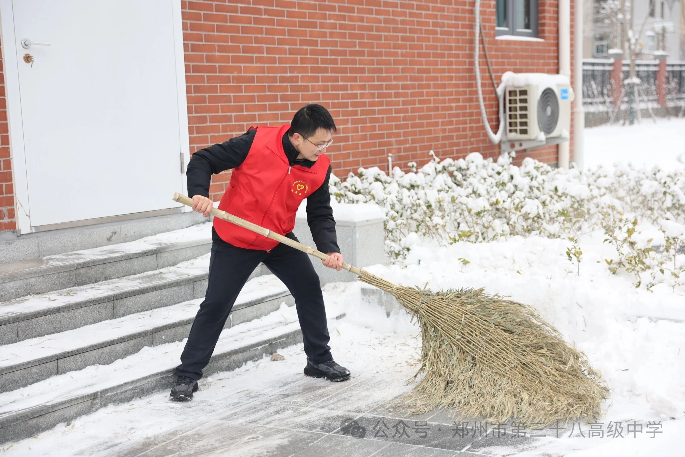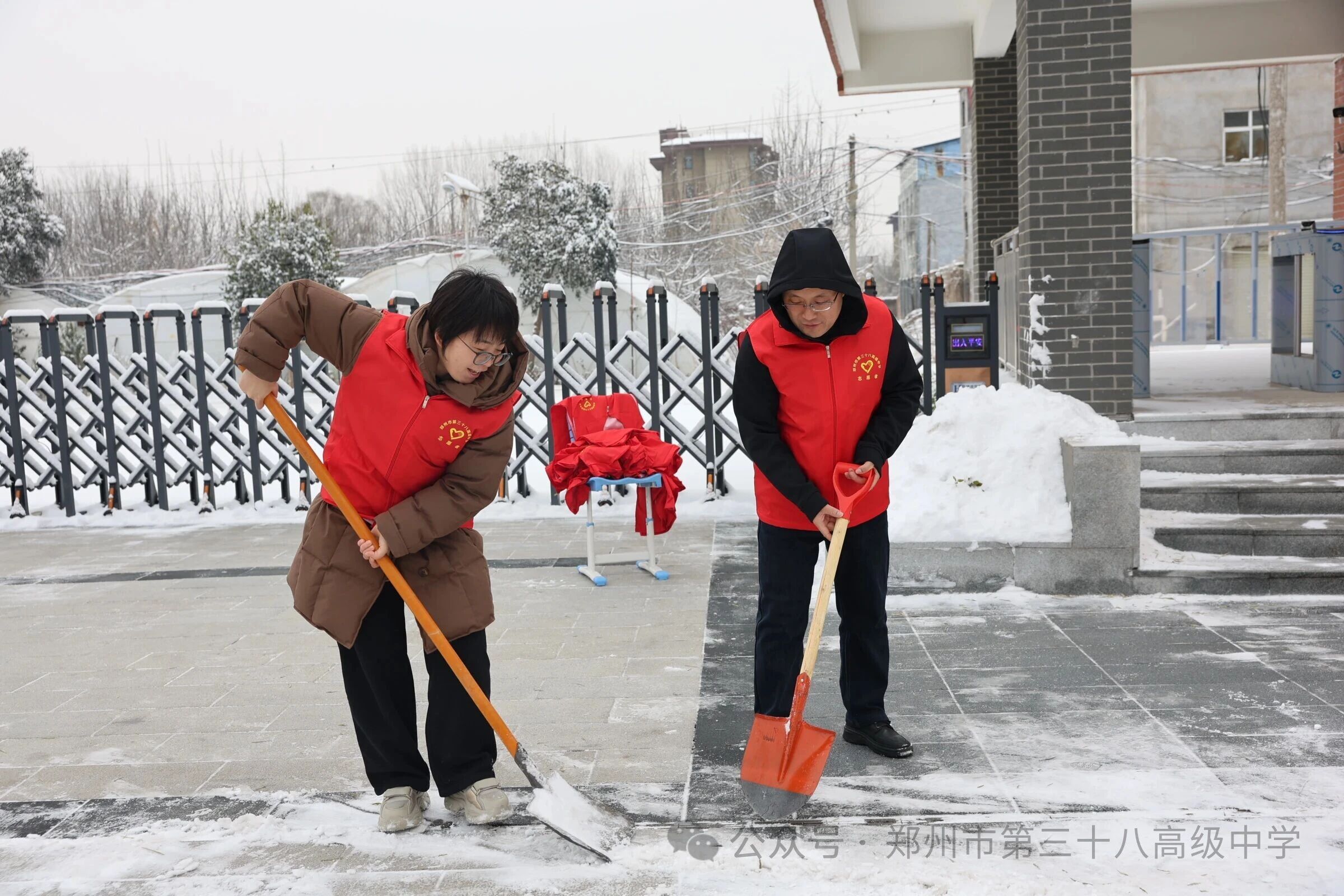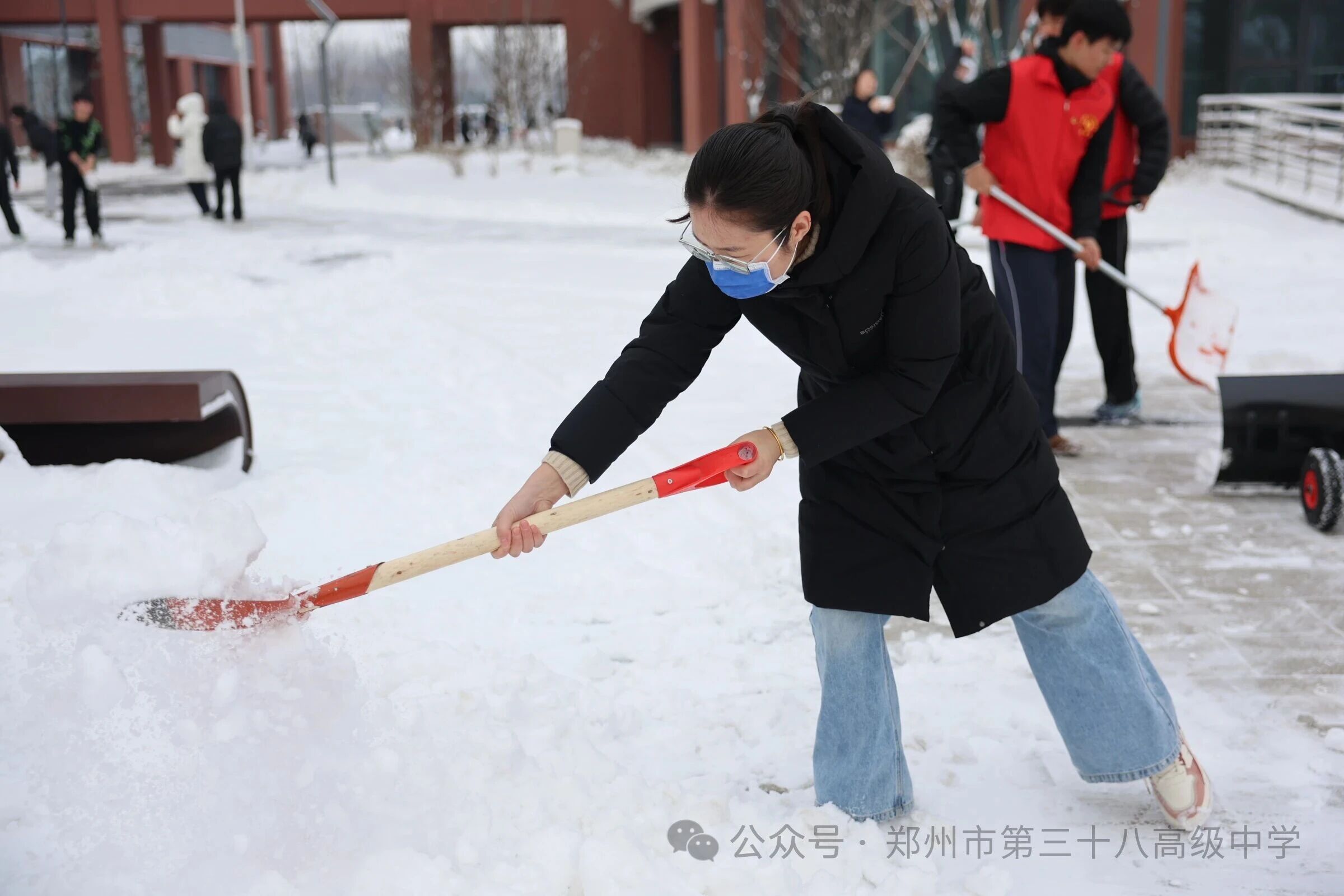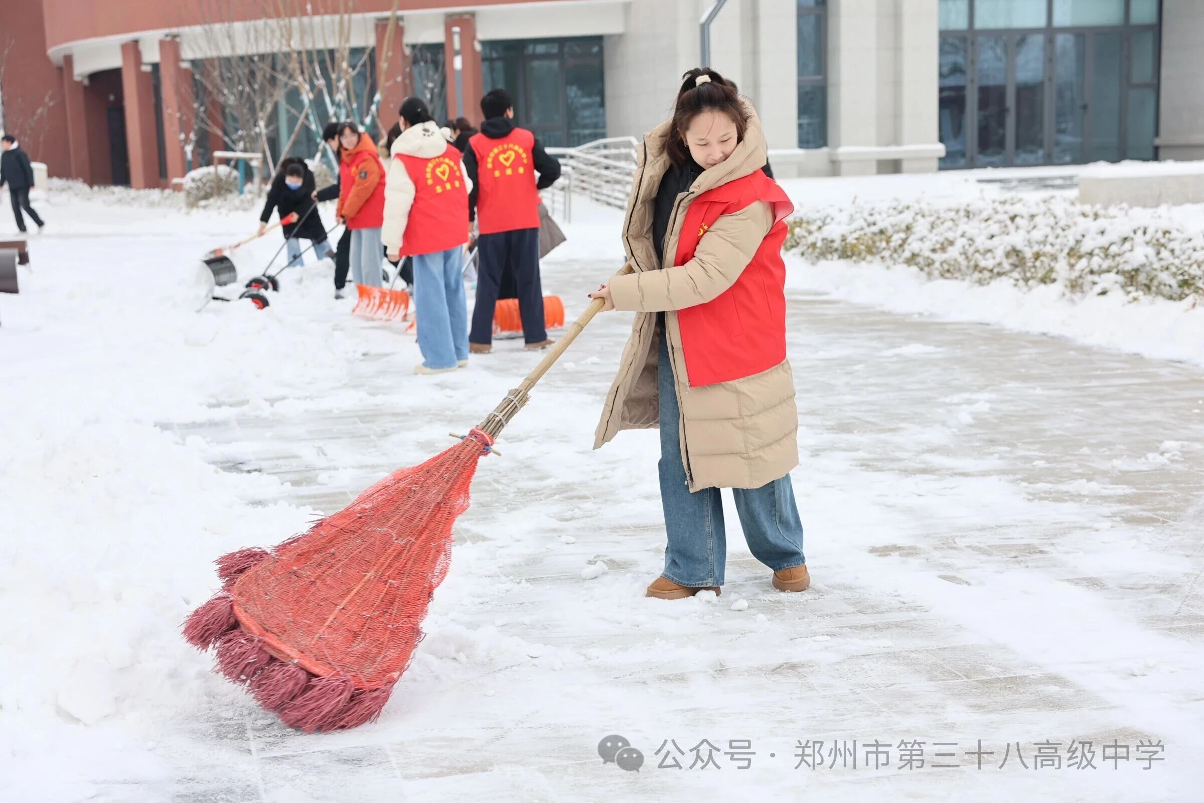 师生齐心清积雪 温情满园护平安——郑州市第三十八高级中学 师生扫雪除冰活动温情开展