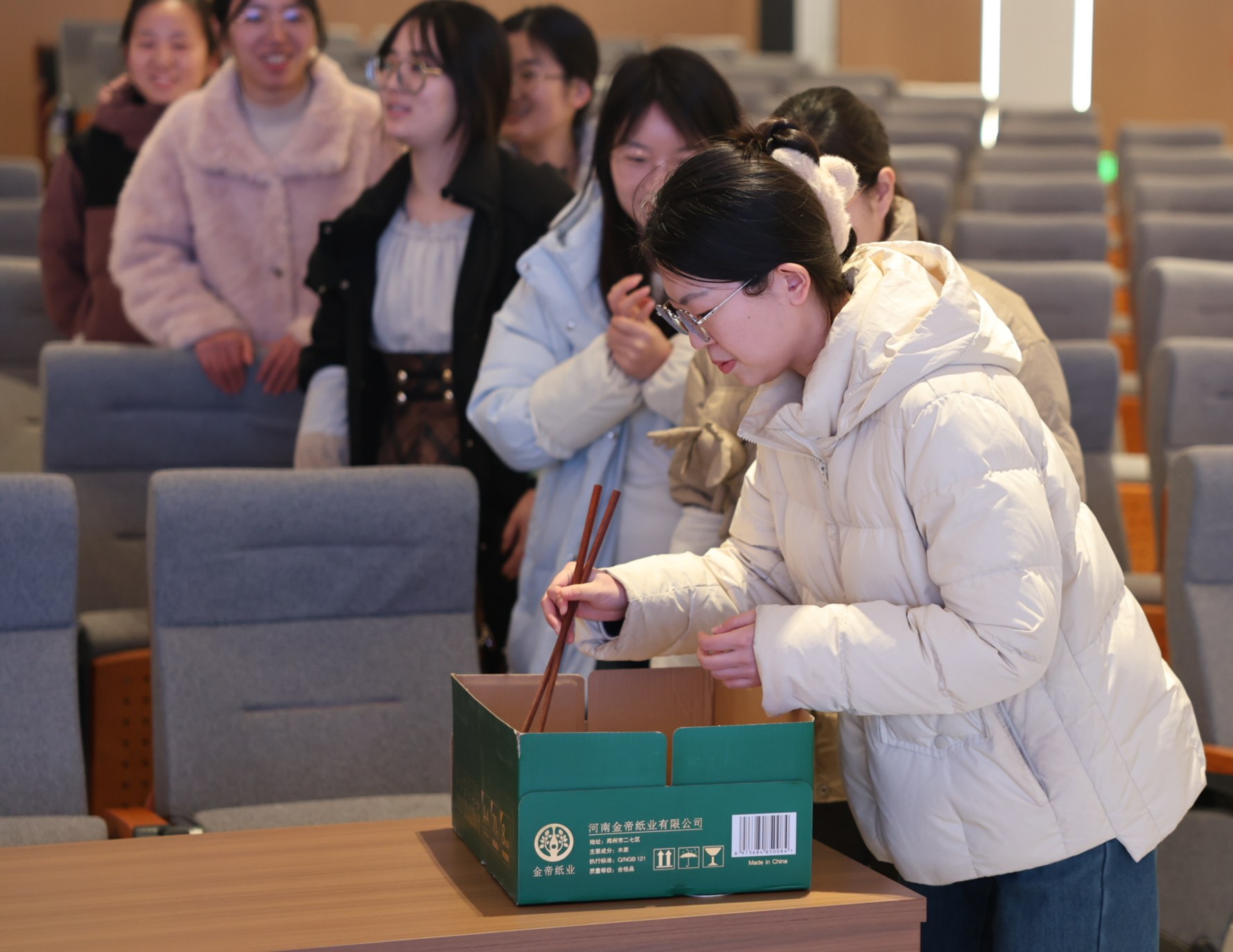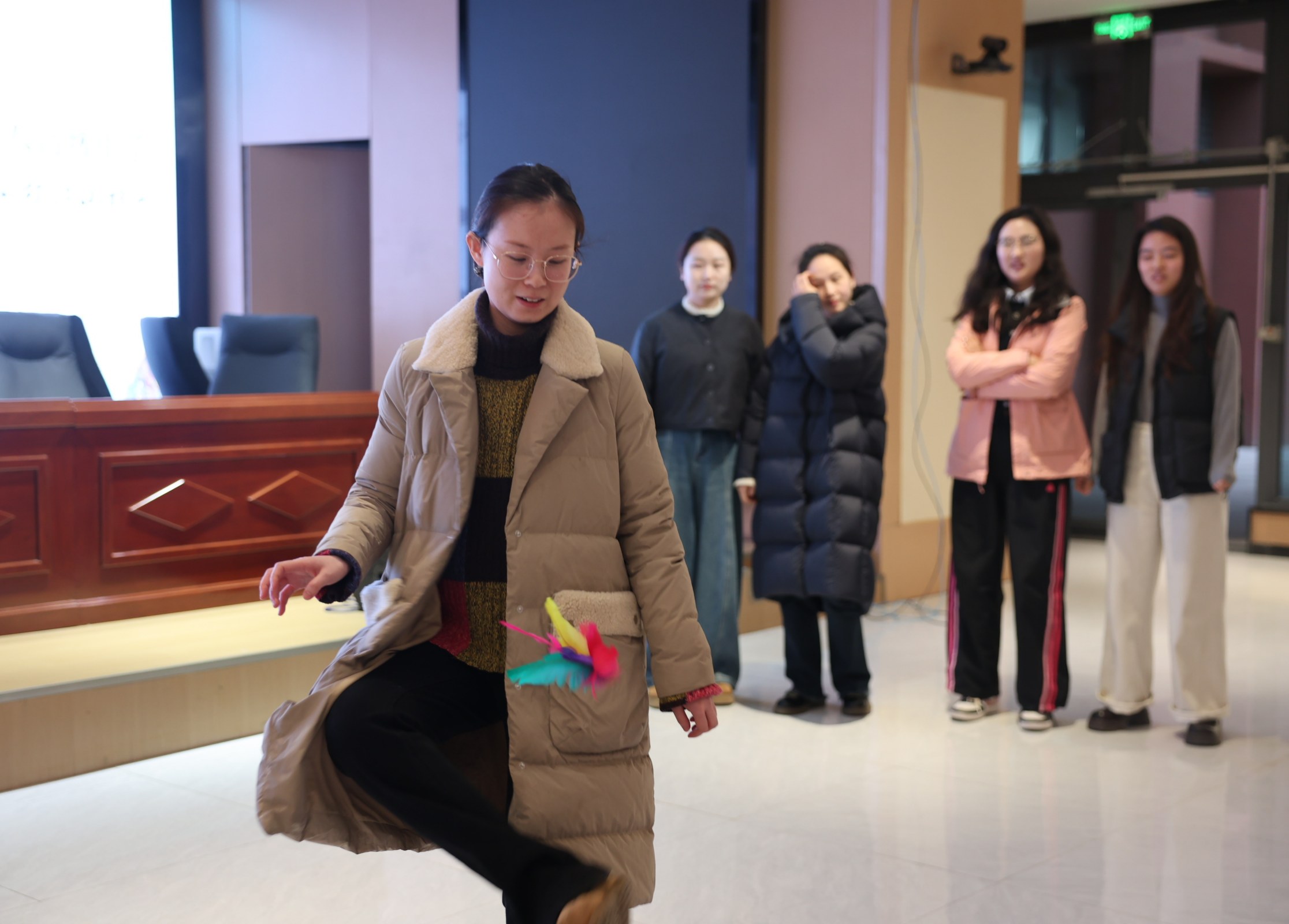 本次趣味活动集趣味性、协作性与知识性于一体,共设置四个创意十足的体验环节,让女教职工们在轻松的互动中舒缓身心、增进情谊。在 “筷乐乒乓” 项目中,平日里执笔执教的双手轻握竹筷,聚精会神地将乒乓球稳稳夹起,这不仅是耐心与技巧的较量,更引得现场阵阵喝彩;“你划我猜” 环节将现场气氛推向高潮,比划者生动表达、猜词者心领神会,一来一往间,女教职工们的默契配合与灵动智慧展现得淋漓尽致;“轻毽如飞” 项目里,五彩的毽子在老师们的足尖轻盈翻飞,大家身姿矫健、神采飞扬,在运动中绽放出别样的活力;压轴的 “智慧答题” 环节将知识与趣味巧妙融合,题目涵盖教育法规、文学历史、生活常识等多个领域,参赛者们沉着冷静、思维敏捷,尽显新时代教育女性睿智博学、从容自信的独特魅力。