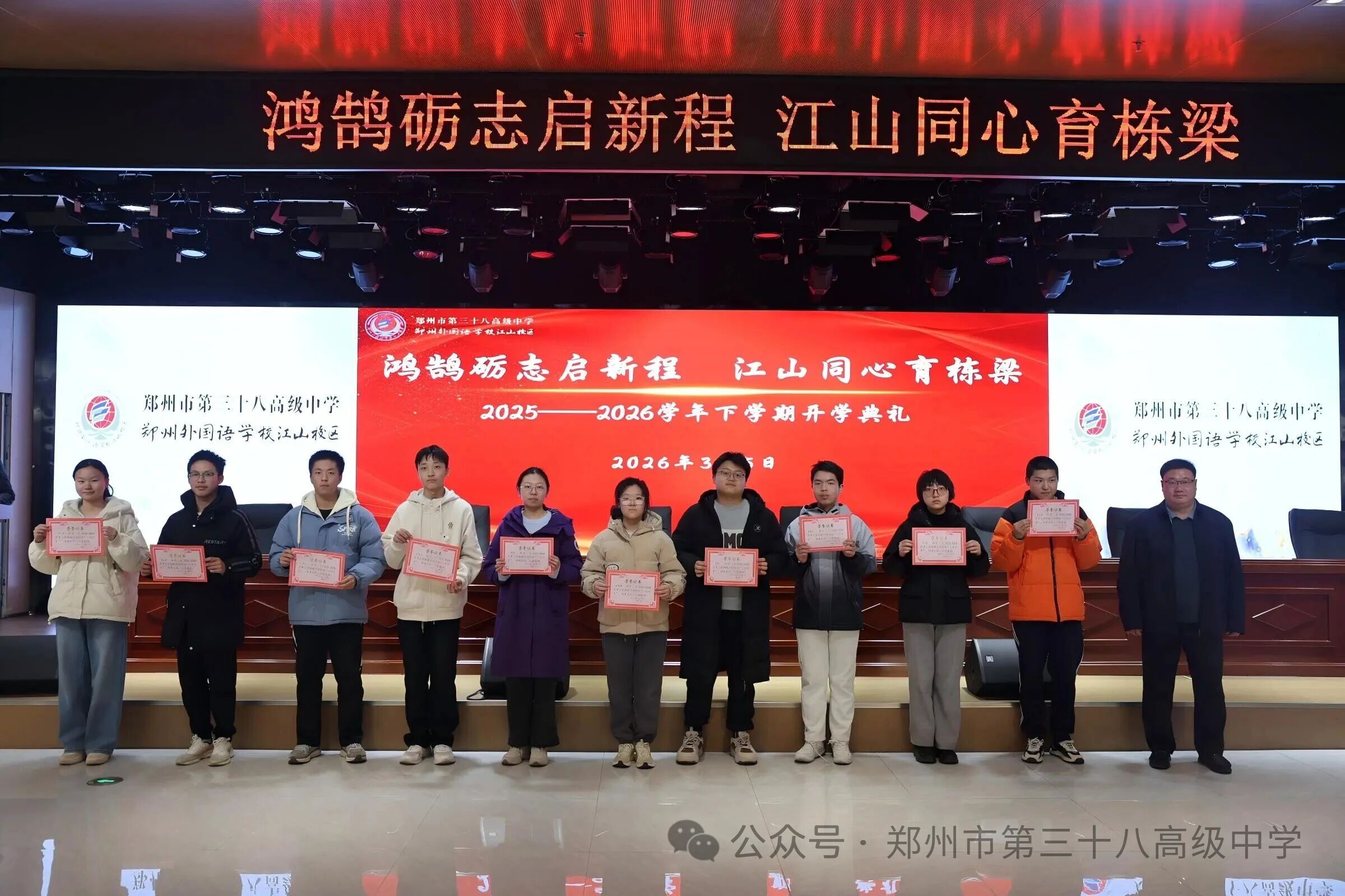 鸿鹄砺志启新程,江山同心育栋梁——郑州市第三十八高级中学2025—2026学年下学期开学典礼隆重举行