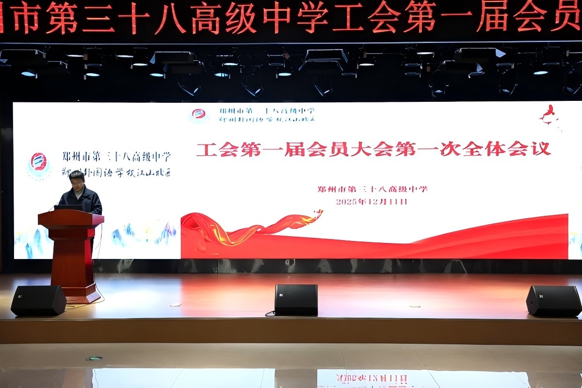 12月11日下午,郑州市第三十八高级中学第一届工会会员大会在学术报告厅成功召开。学校领导班子成员、全体工会会员齐聚一堂,共同见证了学校工会组织的正式成立。大会由工会筹备组成员张艳奎主持。