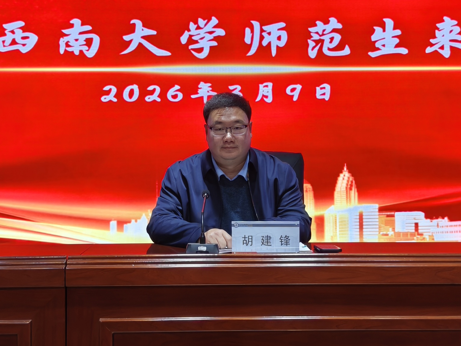 仪式伊始,校长胡建锋代表学校对西南大学实习生的到来表示热烈欢迎。他指出,教育是一场温暖的相遇,更是一份沉甸甸的责任。希望实习生们在接下来的日子里,能够深入课堂、走近学生,在真实的育人环境中不断锤炼自我,在春天里播下成长的种子,早日成长为一名有理想、有担当、有情怀的优秀教师。