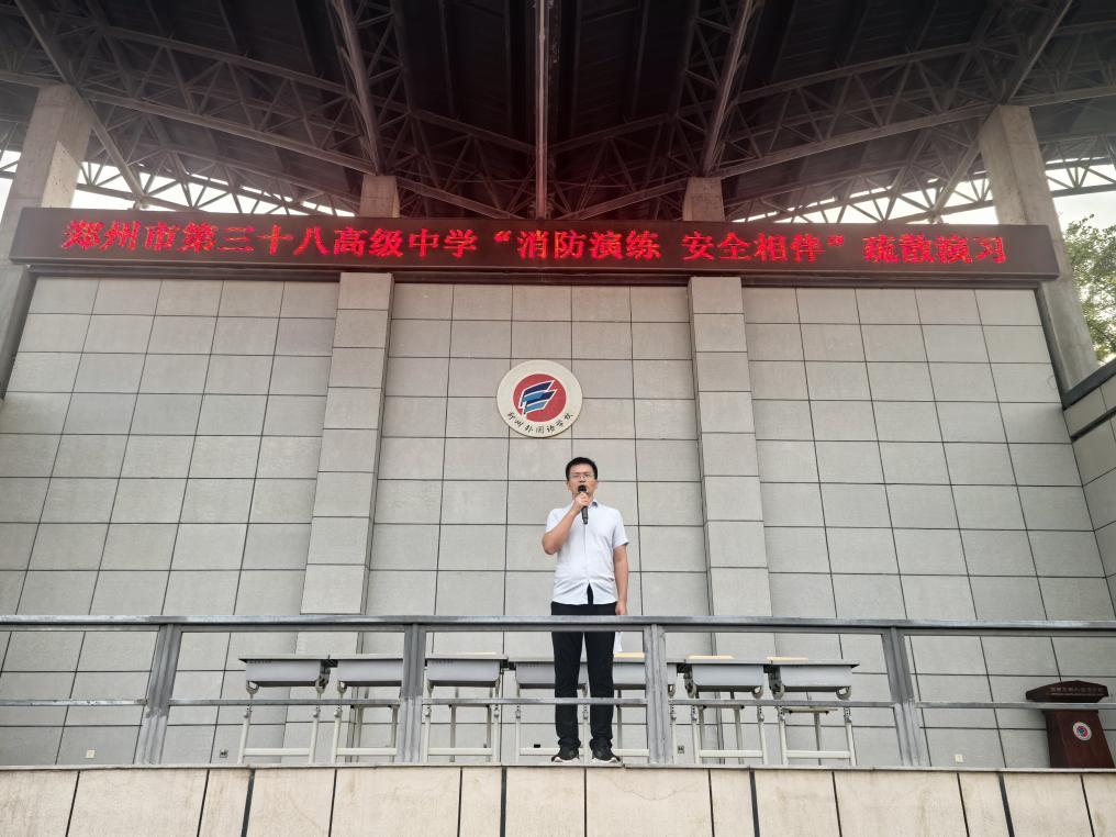 校领导及教官代表分别发言,强调演练的重要性和纪律要求,确保每一位师生都明确疏散流程和注意事项。