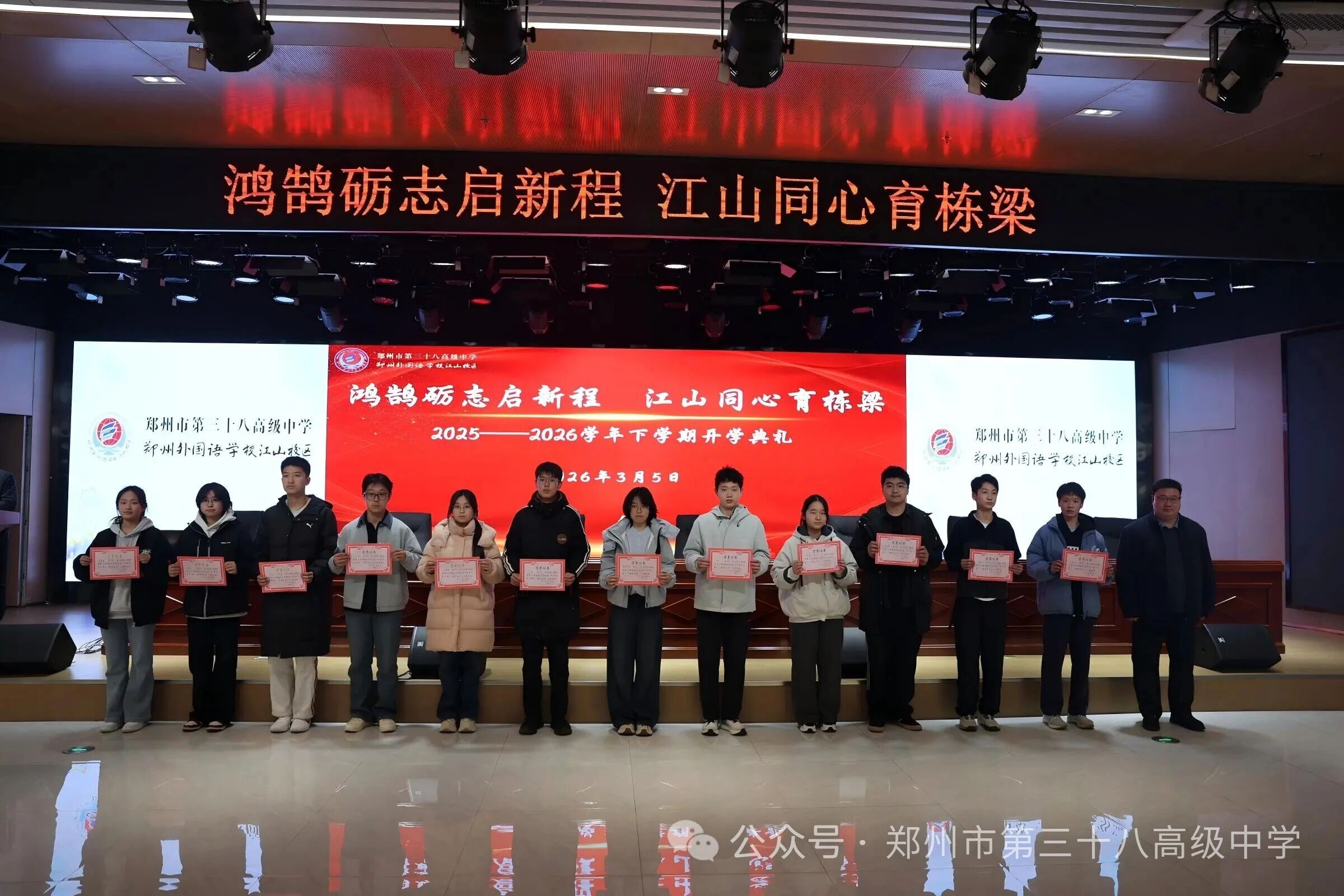 鸿鹄砺志启新程,江山同心育栋梁——郑州市第三十八高级中学2025—2026学年下学期开学典礼隆重举行